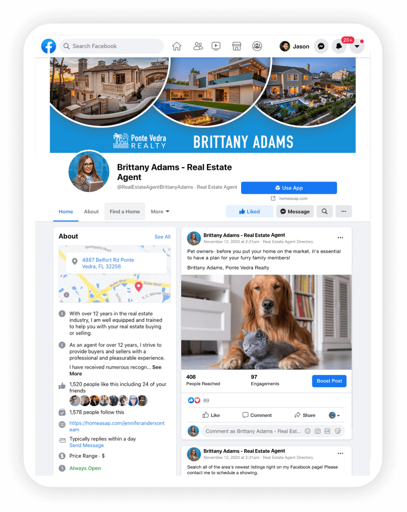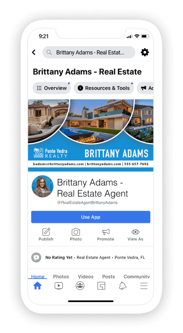 Facebook business pages have excellent SEO and show up in Google searches often before a business or real estate agent’s website. Our team will optimize your page to get the best possible ranking.